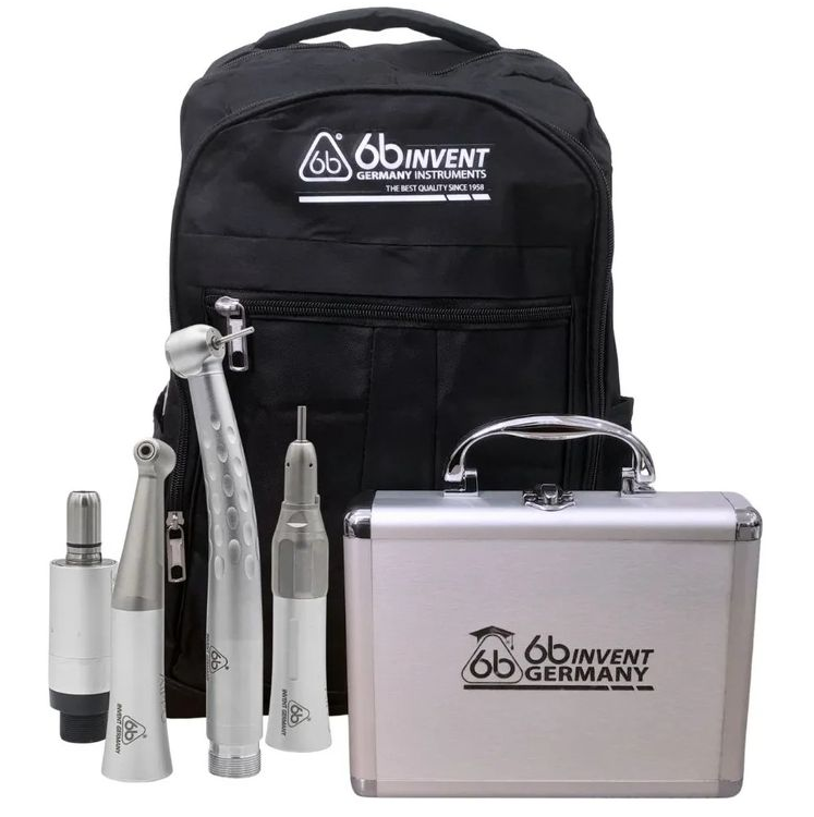 Embalagem com 1 Caneta de Alta Rotação, 1 Caneta de Baixa Rotação, 1 Micromotor, 1 Peça Reta e mochila
