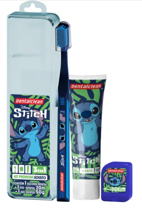 Embalagem com 1 escova de dente + 1 fio dental 20m + 1 gel dental 50g