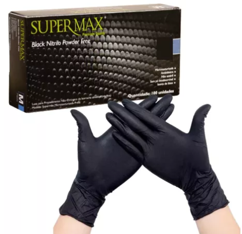 Luva de Procedimento Nitrilo Preta Safemax Tam. M - Supermax