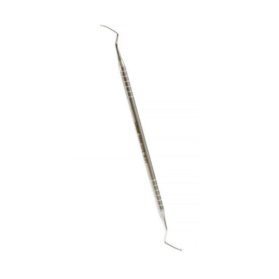 Indicado para uso em dentística. Por apresentar haste mais longa quando comparado com os escavadores tradicionais, é ideal para ser utilizada durante o procedimento de pulpotomia e pulpectomia.
