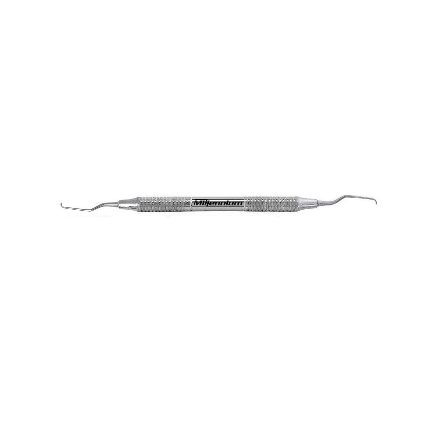 Tem haste mais alongada do que as curetas Gracey em 3mm, e lâmina mais fina e ponta mais curta para melhor acesso em bolsas periodontais profundas, estreitas, furca e superfície de raíz de 5mm ou mais.