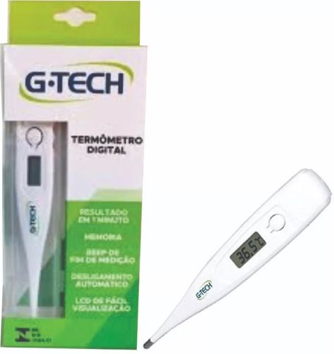 Prático e preciso, possui uma memória interna para guardar a última temperatura medida - mede a temperatura em até 120 segundos, indicado processos de medição de temperatura por via oral e axilar.